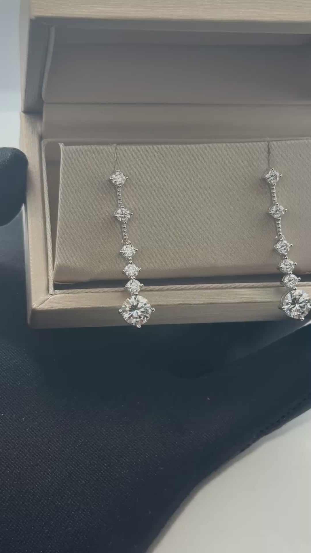 Scintillanti ed eleganti, questi orecchini pendenti catturano la luce in ogni movimento, creando una vera e propria cascata di brillantezza. Le pietre luminose, disposte in sequenza armoniosa, culminano in un moissanite centrale che dona un tocco di raffinatezza senza tempo.